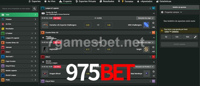 O 975bet oferece uma grande seleção de opções de apostas em e-sports com probabilidades competitivas